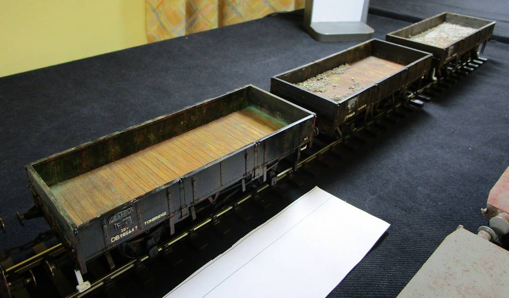 Tim Peacock's Coal Wagons. Two of these are Parkside kits and one is from Bachmann. All three have been heavily weathered with washes and powders, have distressed paintwork and have been given BR numbers.