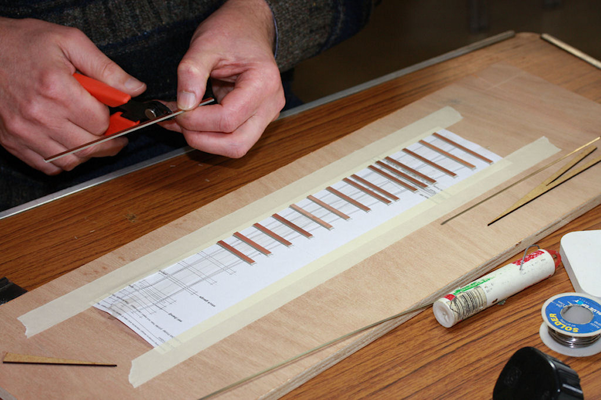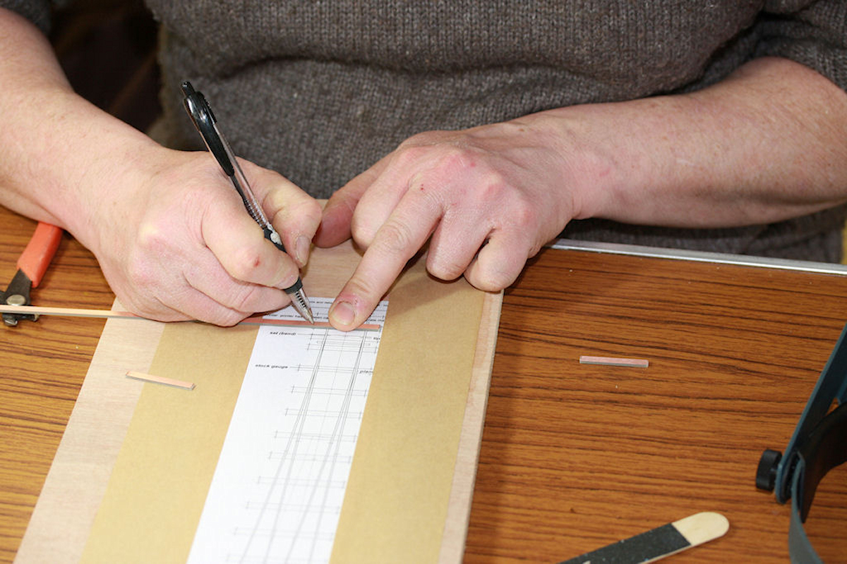 Checking the fit of a rail as it is filed with one of the jigs made for the course