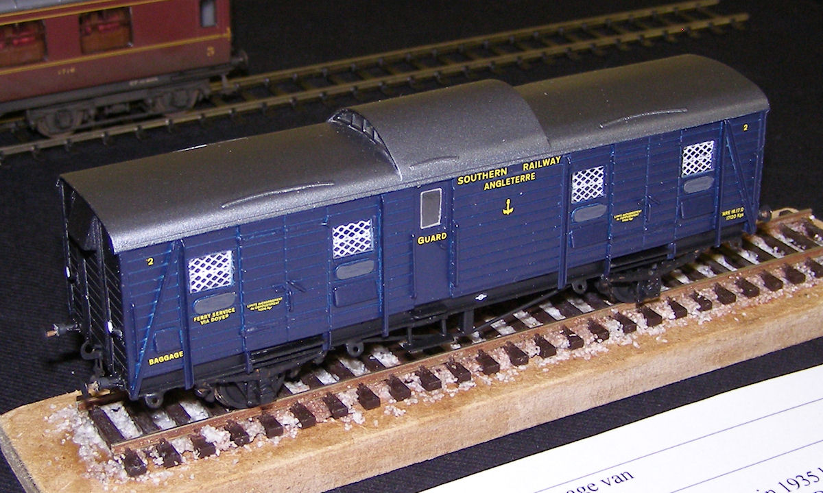Description: 4mm sacle (OO gauge). One of 3 baggage vans built in 1935 by the Southern Railway for the London to Paris "Night Ferry". Painted