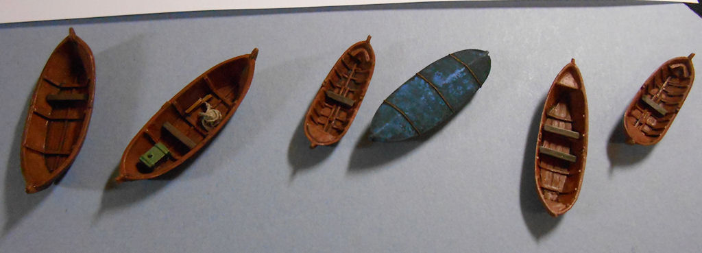 Description: A selection of rowing boats, Artitec resin models painted in acrylics.