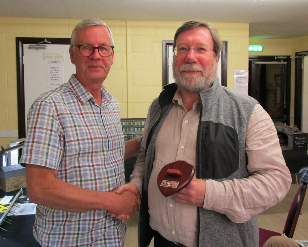 Paul Wright (right) receiving the Trophy from Kevin Wilson.