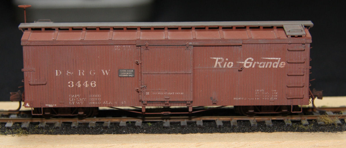 kit, with the few errors that Railline made corrected: side grab irons too short, missing coupler lift bar. 3446 was on of the cars used for hauling foodstffs,