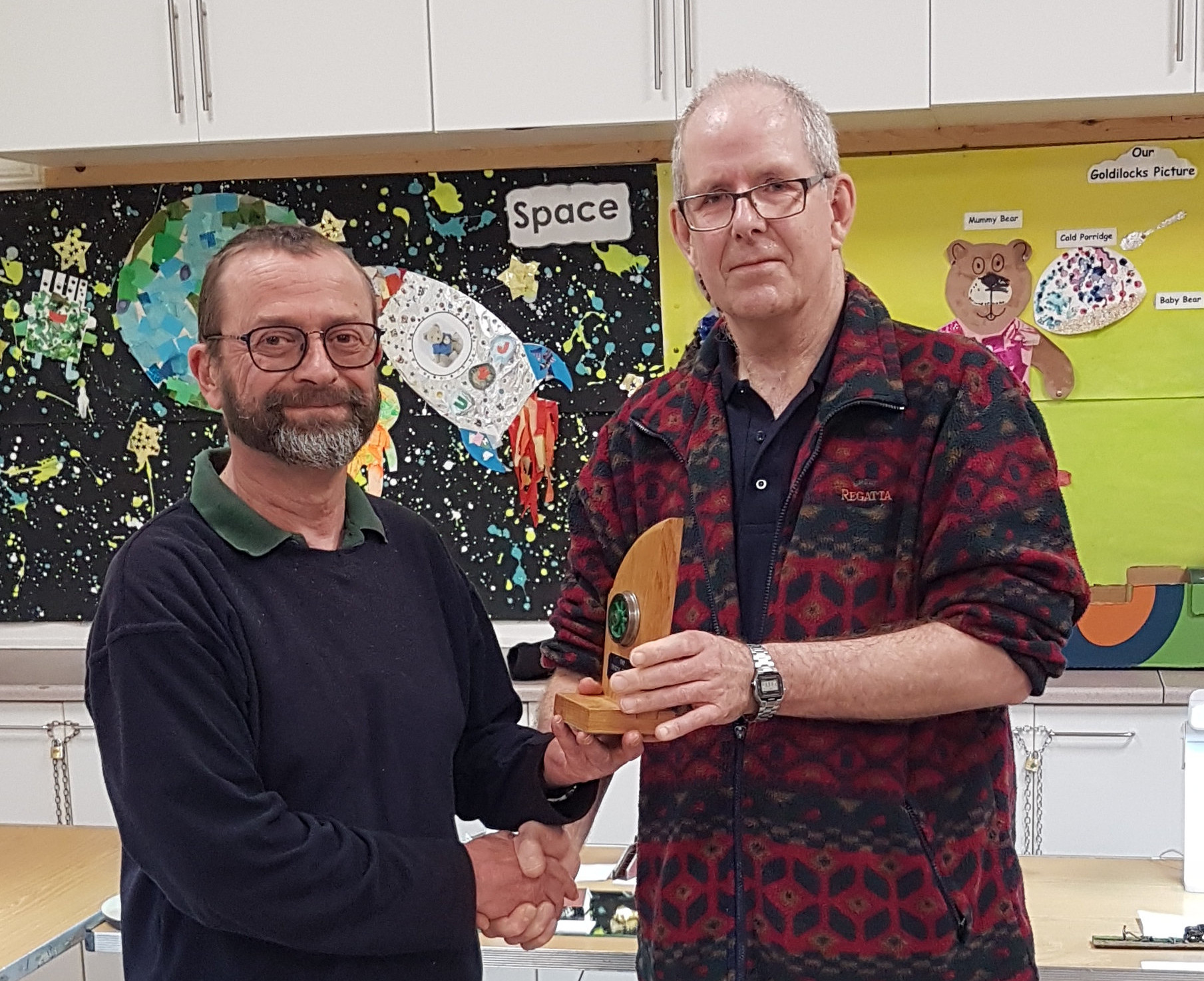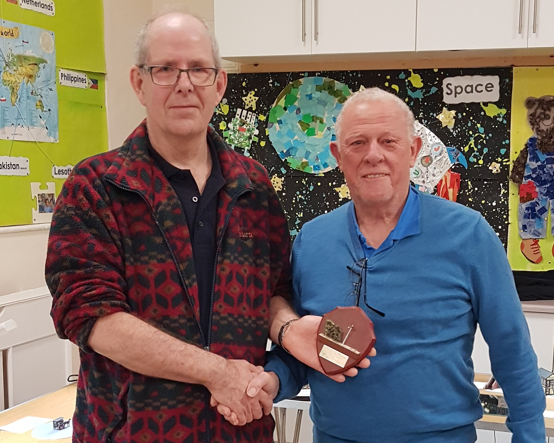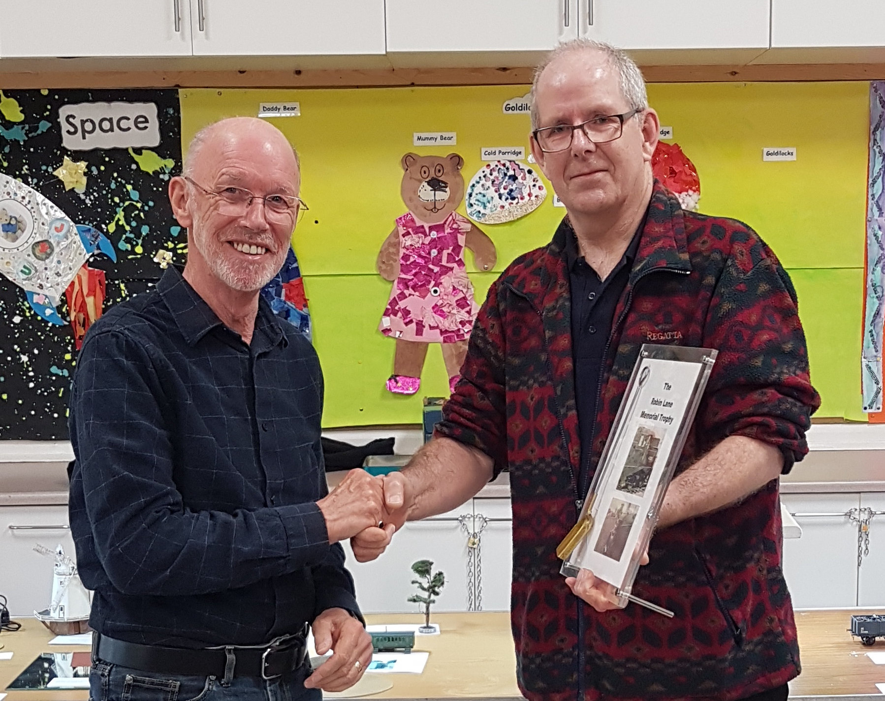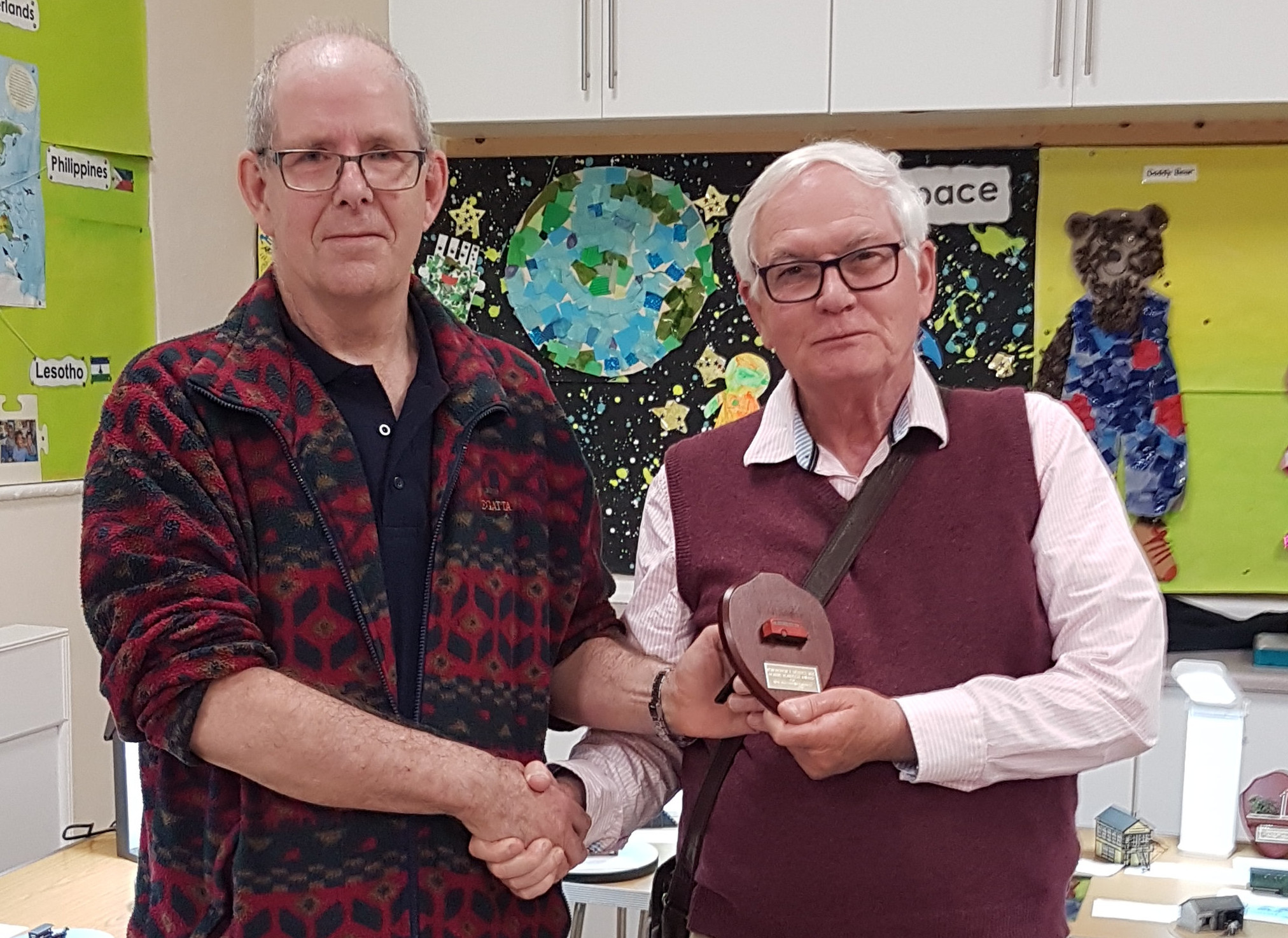 Karl presented the Wheeltapper trophy for the best model out of all the rolling stock categories to James Aitken for his model of a GWR Rectank wagon.