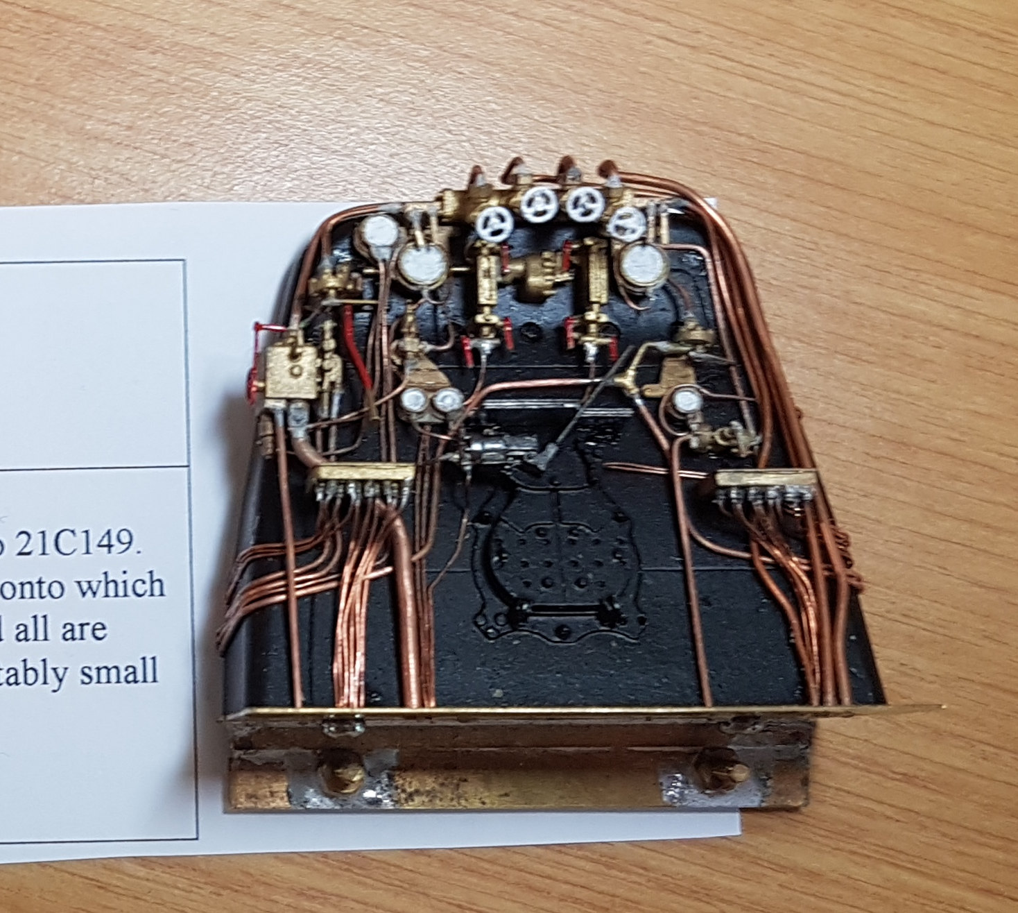 The winner of the Steam Locomotives category was James Aitken with his model of a Southern Railway Battle of Britain class locomotive backhead. This is the backhead for his Battle of Britain loco, which will be Anti Aircraft Command, no 21C149. All the parts come from the Martin Finney kit for the loco, with a cast whitemetal backhead onto which the many castings and piping were placed. All pipes are copper, in 6 different diameters, and all are carefully soldered into tiny holes in the castings which first had to be opened out using a suitably small drill.