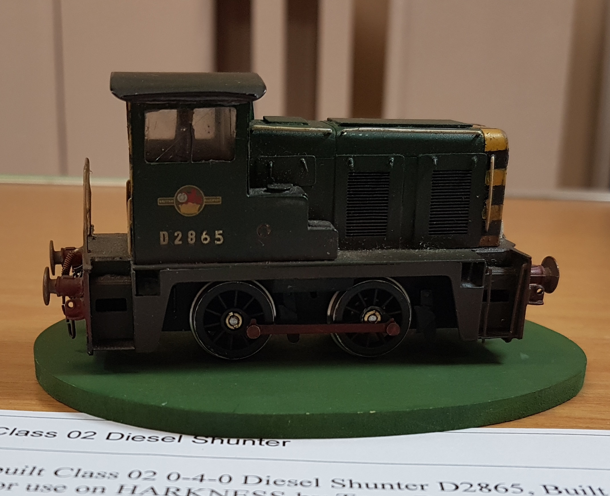 The winner of the Diesel/Electric Locomotives category was Tony Bucknell with his 4mm model of class O2 Diesel Shunter number D2865. The British Rail class O2 were a class of twenty 0-4-0 diesel-hydraulic shunting locos built in 1960 for service in areas of restricted loading gauge and curvature such as docks. The model has been constructed from a Craftsman Kit and is presented in early BR green livery.