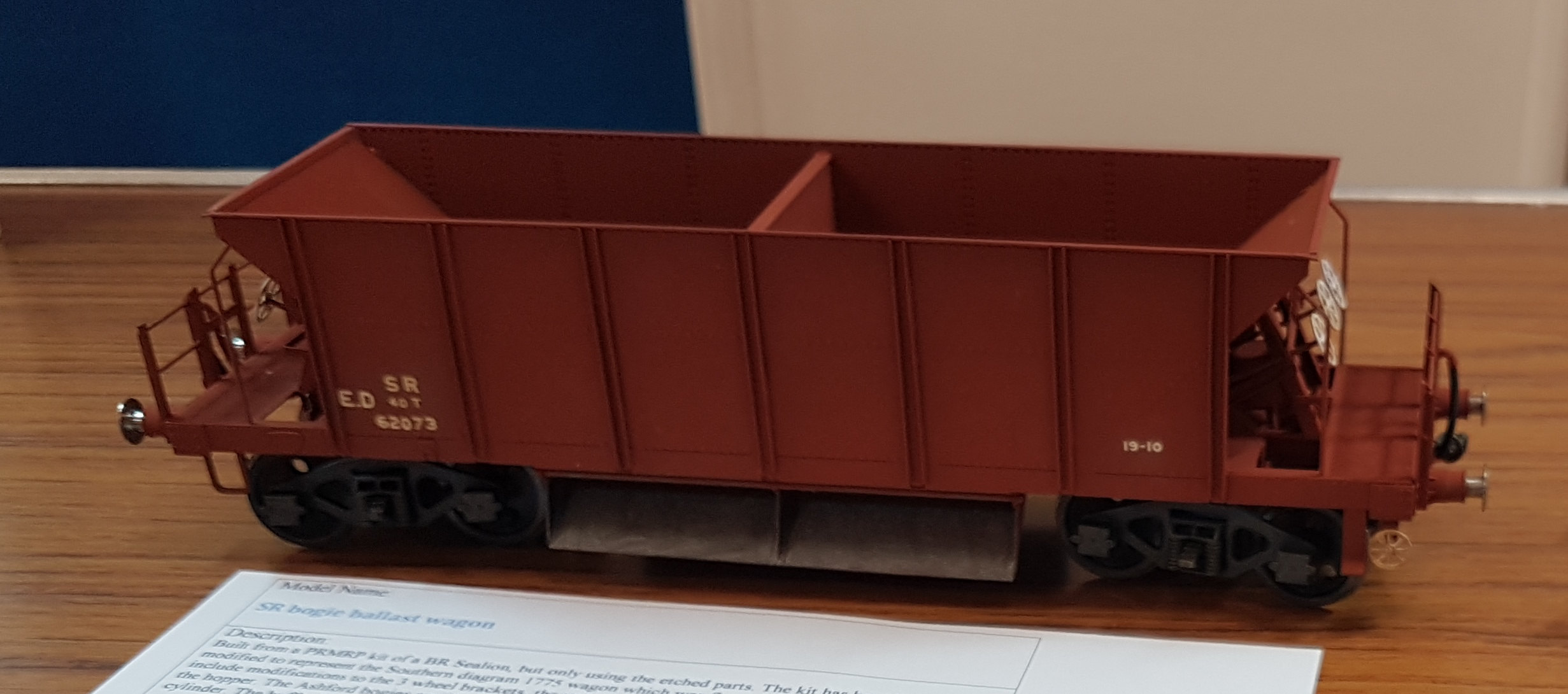 The winner of the freight and engineers stock category was James Aitken for his models of a SR Bogie Ballast Wagon (shown here) and a GWR Rectank wagon, which also won the Wheeltapper Trophy (see above).