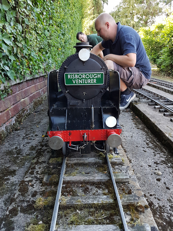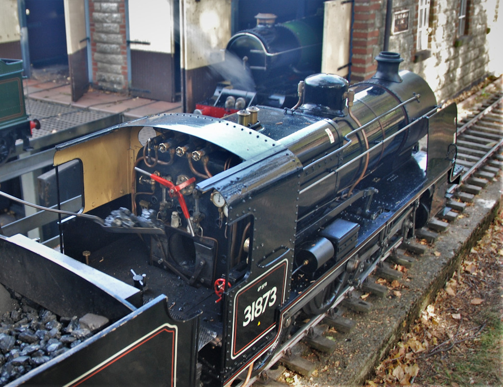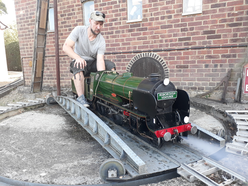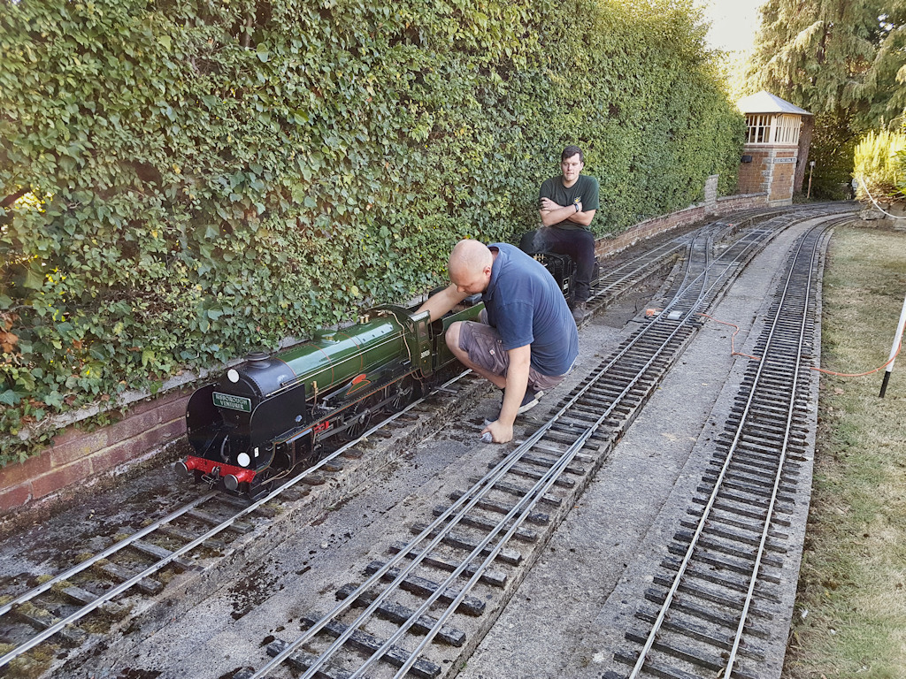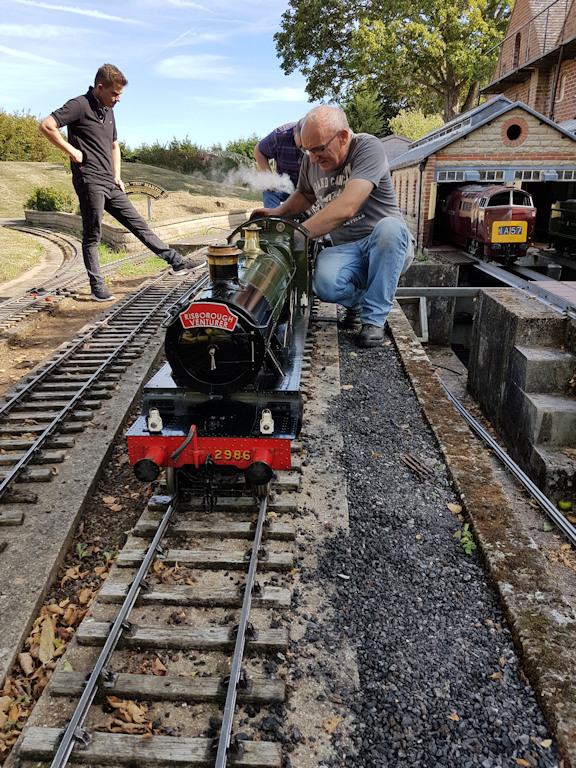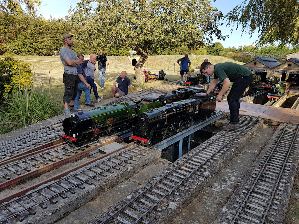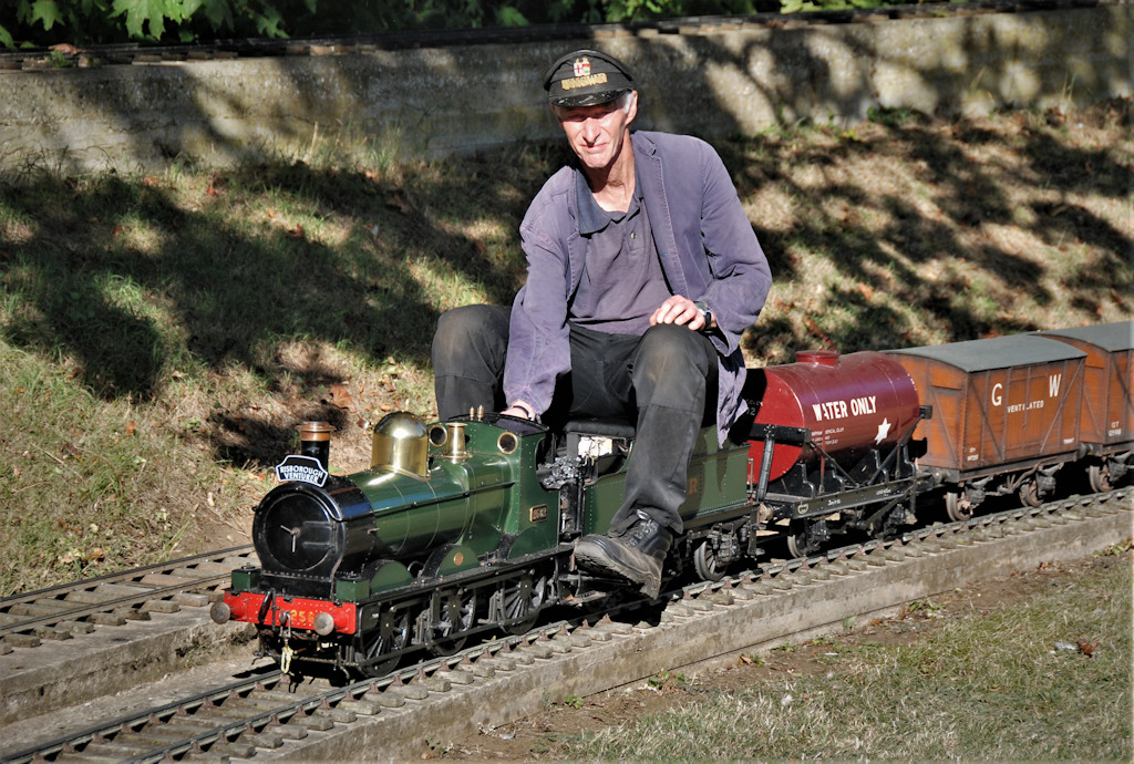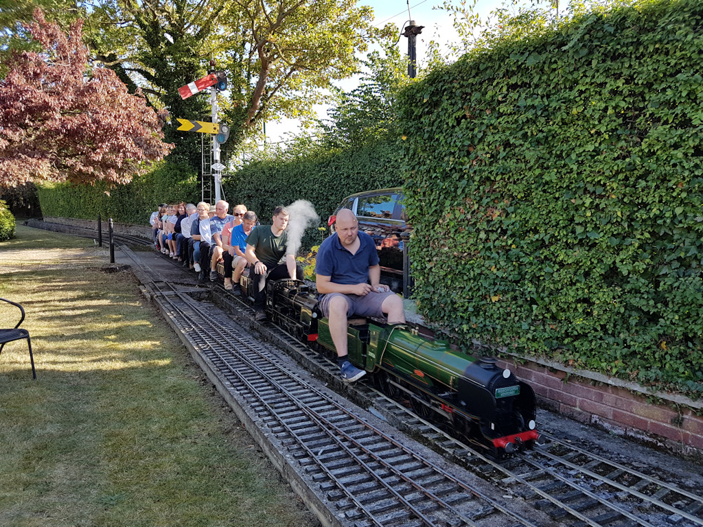 This visit happened on the 15th September 2019 which was the last of one the four open days this year, but unfortunately the last ever time it will be open, as the land is being sold off to developers. Around 40 Club members including their guest met up at the railway at bout 2.30pm, for an afternoon of fun, also there were many members of the public there as well, so trains were full. The work of this 7¼ in gauge railway was built by EC “Ted” Martin (1922-2010) from the 1970s onwards on a hectare of land in Thame in Oxfordshire. With a lot of care and attention made to all the work involved track laying to the various buildings, which is not surprising as he was a very accomplished precision engineer. His friends and family have kept the railway running since his death.