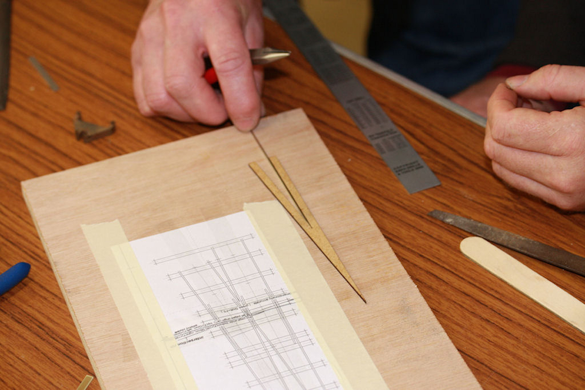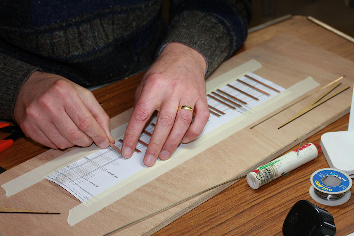 Checking the fit of a rail as it is filed with one of the jigs made for the course