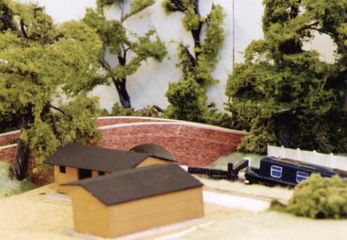 A holiday boat about to descend lock 2 and then pass under the bridge which carries a track across the canal to the part built stables in the foreground.