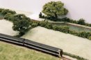 the scenery to the right of the layout with its characteristic woodland hillside. The