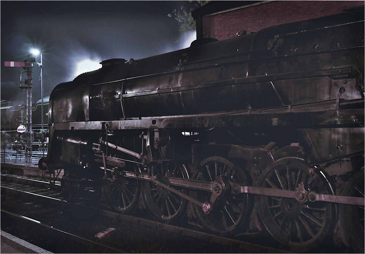 Photo taken by John Casson of a BR Standard ‘9F’ 2-10-0 No.92212 outside Ropley shed, Mid Hants Railway