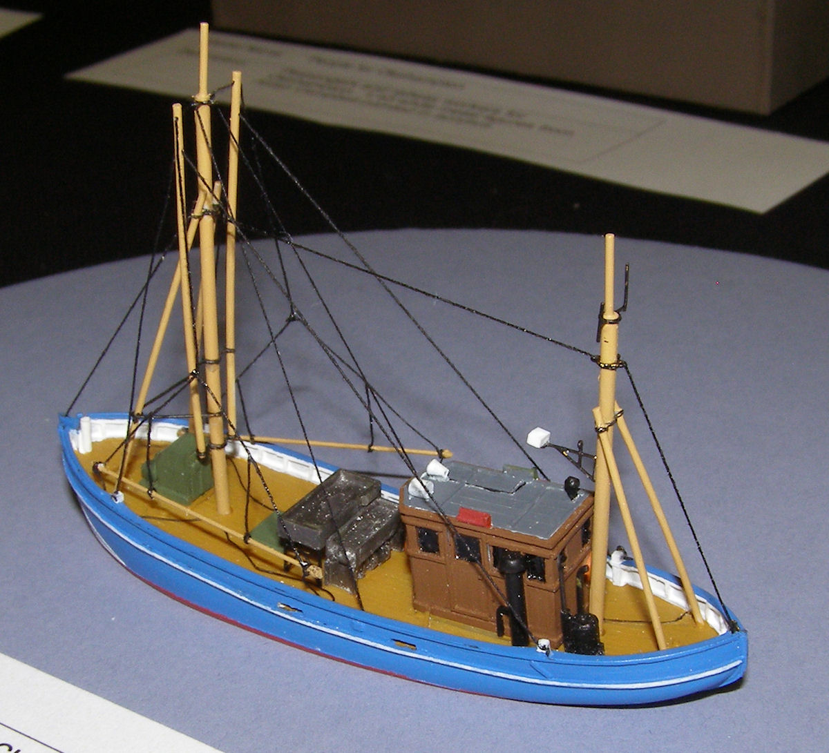 Description: 1:160, Dutch Shrimp Cutte from an Artitec resin and etched brass kit painted in acrylics. Masts aare platic rod, rigging is cotton cord