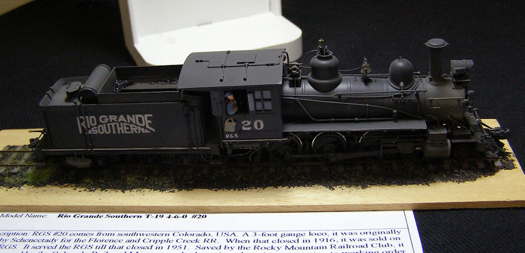 Description: RGS#20 comes from southwestern Colorado, USA. A3-foot gauge loco, it was originally built by Schenectady for Florence and Cripple Creek RR. When that closed in 9116, it