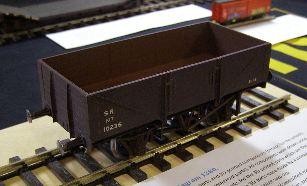 Description: This model has been made using laser cut parts and 3D printed components (except the wheels, buffer heads and 3 link couplings which are commercial parts. All components were drawn using CAD - ProgeCad for the laser cuts parts and Solidworks for the 3D printed parts which are the buffer bodies, axel boxes, brake shoes and brake hangars. The 3D parts were made by a company called CW Railways. In fact the parts here can be seen on their website http://www.cwrailways.com/0-gauge-7mm-scale.html. The final assembled model was spray painted with Precision Paints SR brown, lettered suing HMRS transfers and weathered using a grey wash and dry brushing.