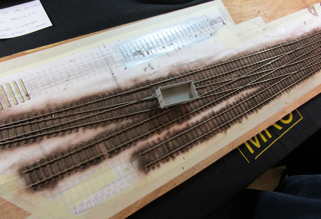 Description:Track work almost ready for laying on the new layout. Tie bars in situ, wire droppers to be added next. Ply sleepers with Exactoscale chairs, all rail handmade and formed based on the templot plan of Aylesbury Town.