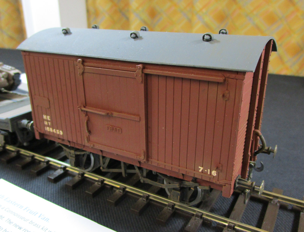 Description: Made from a Connoisseur brass kit with Slaters wheels. I replaced the roof as the thin brass supplied did not look right. The new roof is made from thin plastic sheet curved using an oven! A rocking axle is fitted at one end to help keep all 4 wheels on the track. Buffers have been replaced by Parkside buffers with my own springing system inside. The screw couplings comes from spare parts left over from a JLTRT Warwell kit.