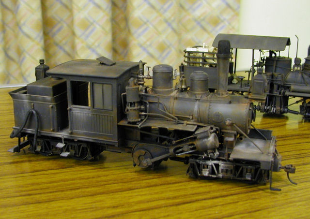 Richard Turner's 1:48 scale 20 Tonne Climax. A Bachmann Climax stripped and remodelled as seen. Other added details include bake pump, tank and piping. Heavy weathering is applied by airbrush, washes and drybrushing, check out the oil runs on the rear of the tender. Fully fitted with DCC and sound.