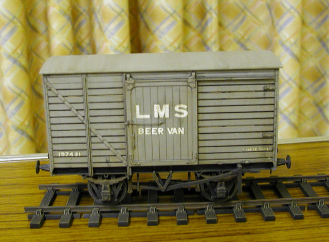 Richard Turner's LMS Ventilated Beer Van. This is made from a Parkside plastci kit. Painted using airbrush, weathered using washes and drybrush.