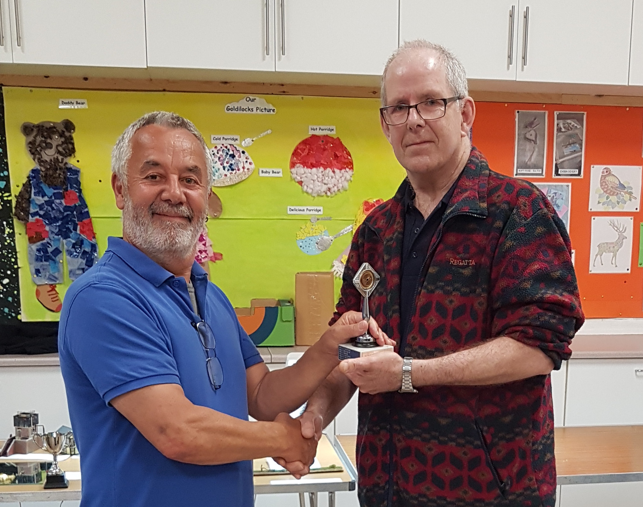 Karl presented the Wheeltapper trophy for the best model out of all the rolling stock categories to James Aitken for his model of a GWR Rectank wagon.