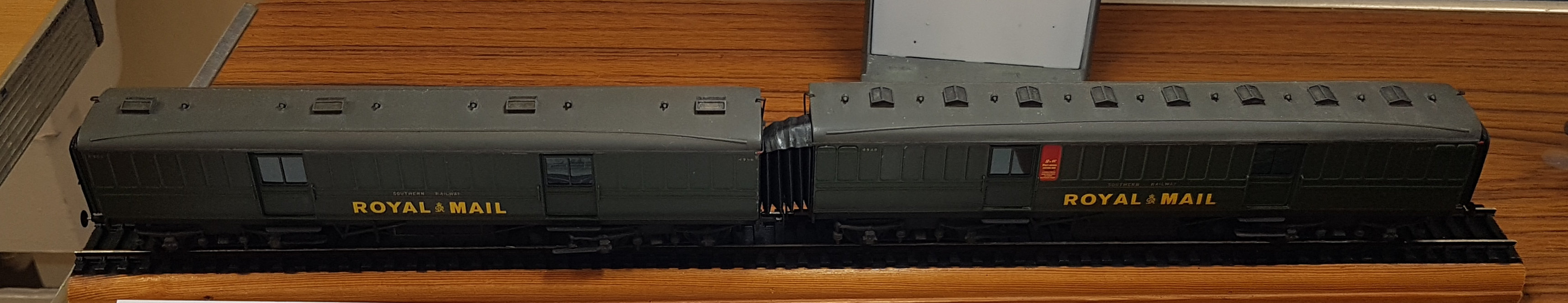 The winner of the freight and engineers stock category was Roy Norton for his Southern Railway Royal Mail coaches. The two coaches are a sorting van and a storage van. These models are of the ex-SECR mail vans were constructed from etched brass sides and ends which Roy had designed and etched. The models include modified MJT corridor connectors, Masokits screw couplings, scratch built emergency brake linkage etc. Paint was Railmatch SR green (Royal Mail vans were never red on the Southern) and transfers were a mixture of HMRS, Model Master and custom transfers from Precision Labels for the post box panels on the sorting van.