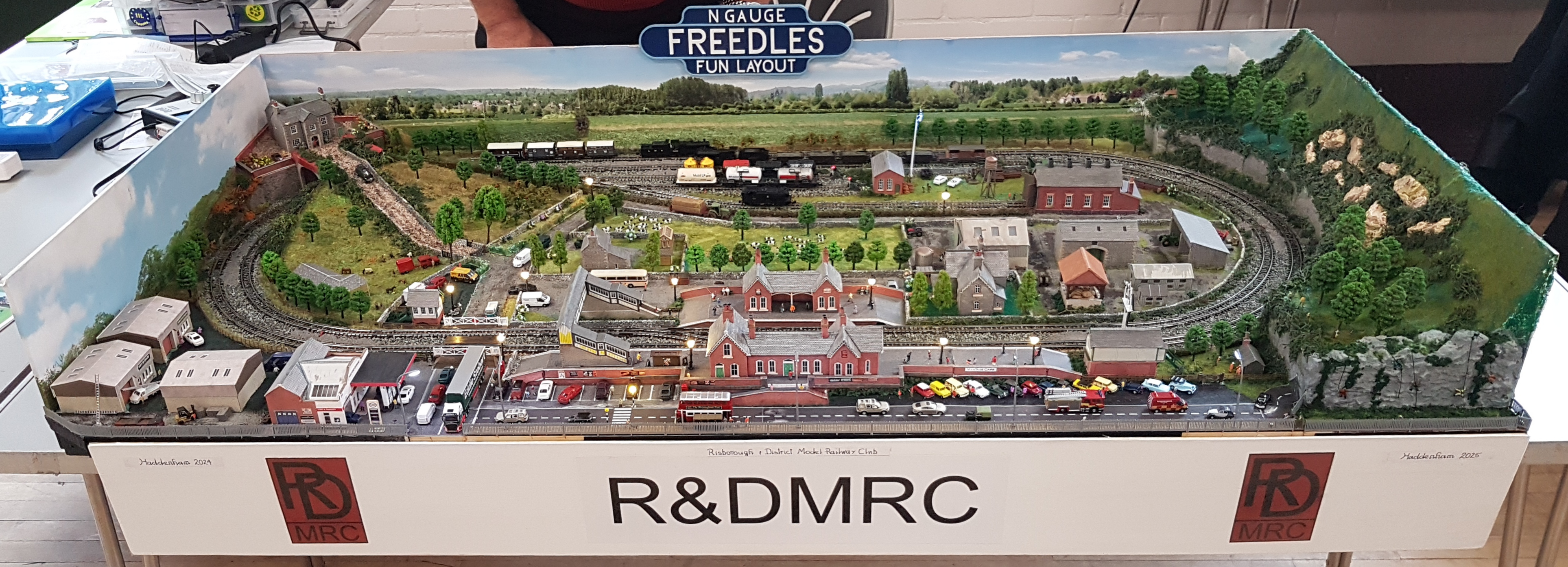 Freedles Ric Lee (RDMRC) - N gauge freelance. “Freedles is a fun layout, with no specific era. It is a small portable layout built from my own imagination and runs steam and diesel locos of my choice. I love collecting both rolling stock and locos.”