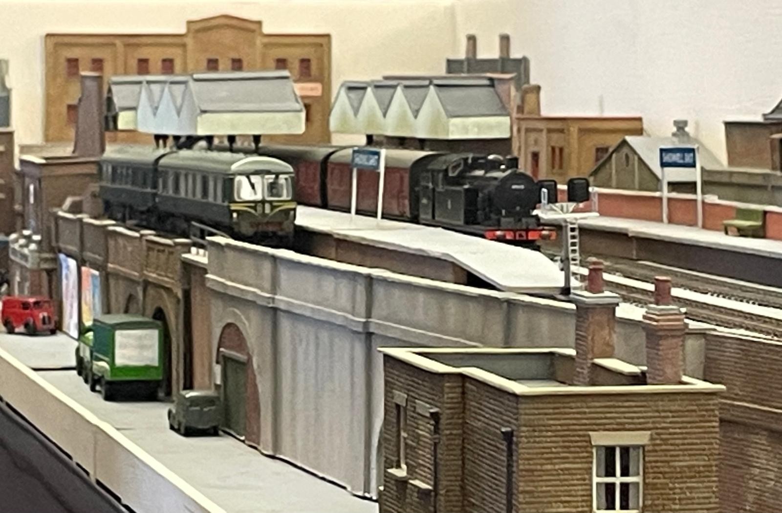 Shadwell East by High Wycombe MRC Juniors - Shadwell East is the new layout from our Junior section at the HWDMRS. It presents a small terminus in the East End of London, serving the once thriving docks, industries and commercial businesses in that busy area. Suburban passenger services connect with north and east London, and a freight siding links to the adjacent riverside wharfs. The layout operation today reflects the late 1950s and early 1960s period and the transition from steam to early diesels. The layout illustrates some of the modelling skills and techniques that our thriving club Junior section for 12-18 years can achieve with encouragement, support and skills development. Do ask us today if you would like more information about our work with young people or email our secretary on secretary@hwdmrs.org.uk