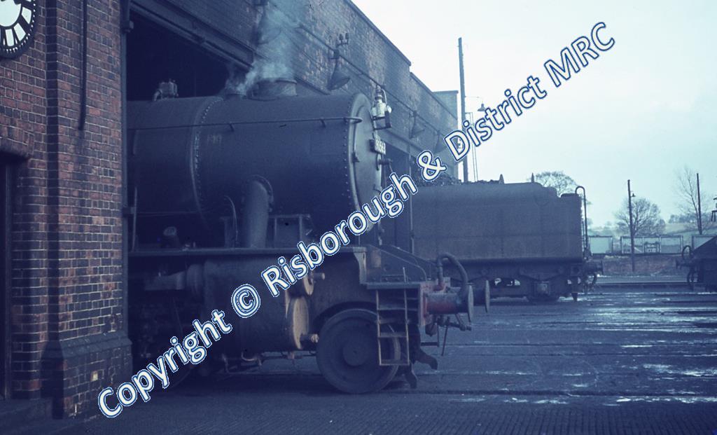 Fr R smokebox peeping out of shed